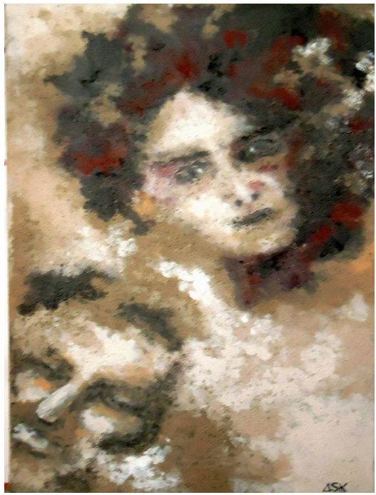 Técnica y elementos: tela, acrílicos arenado, pastinas para efecto quebrado.